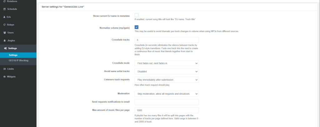 - Jingle Interval: Define how often jingles or station IDs are automatically inserted into your standard music rotation (e.g., every 5 or 10 tracks).