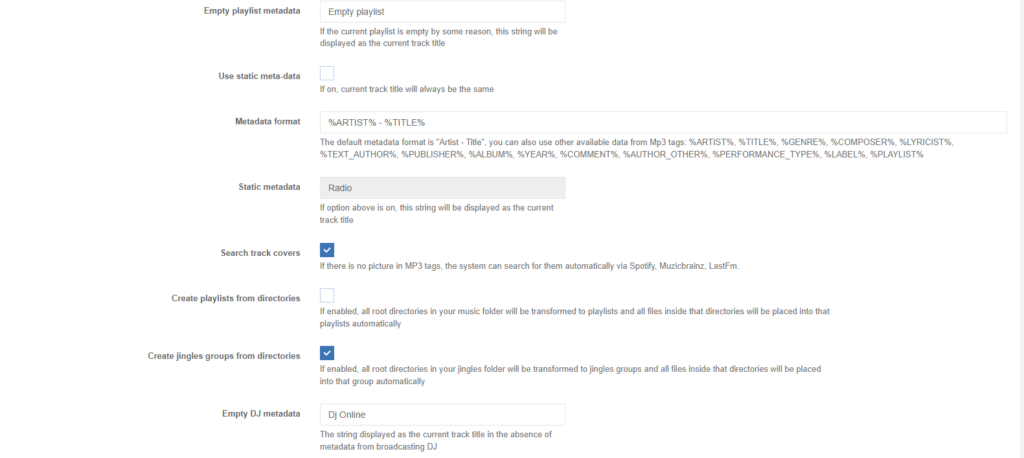 - Metadata Control: Decide whether to use dynamic metadata (showing current track title) or static metadata (hiding track titles).