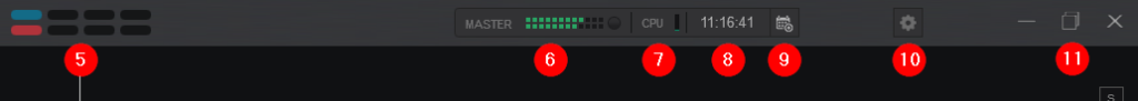 - TITLE BAR BUTTONS. These buttons allow you to control the size and state of VirtualDJ as well as close the software when required.