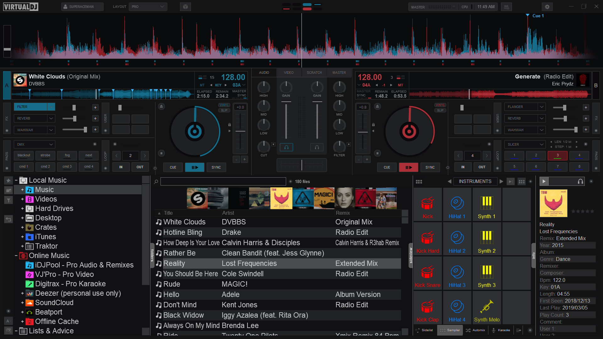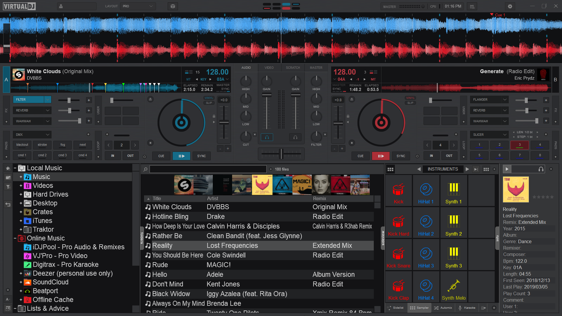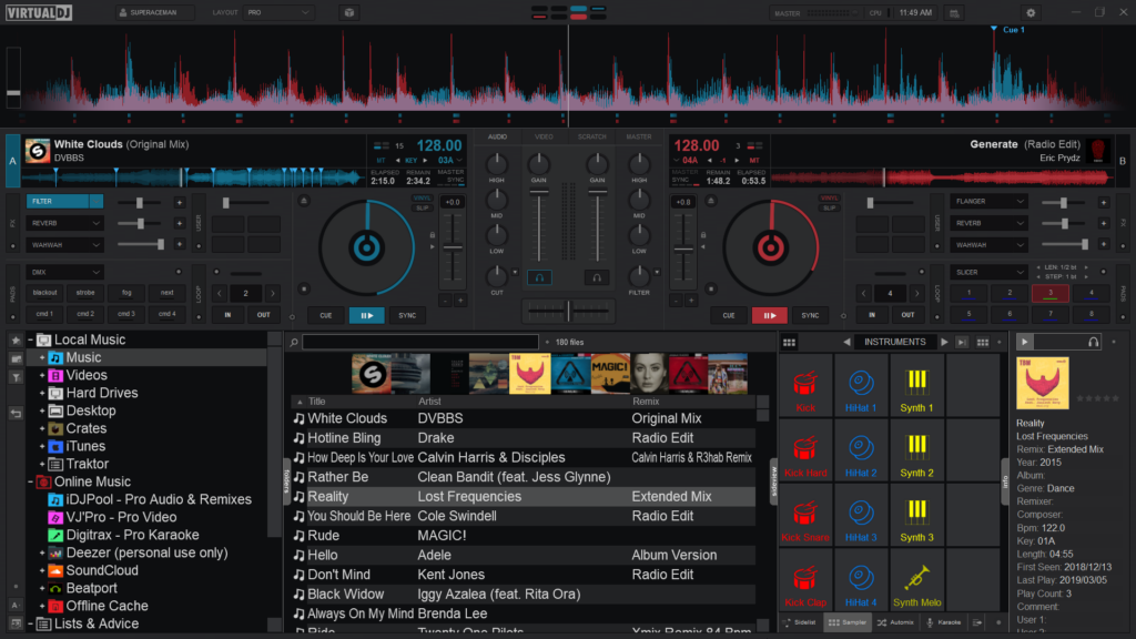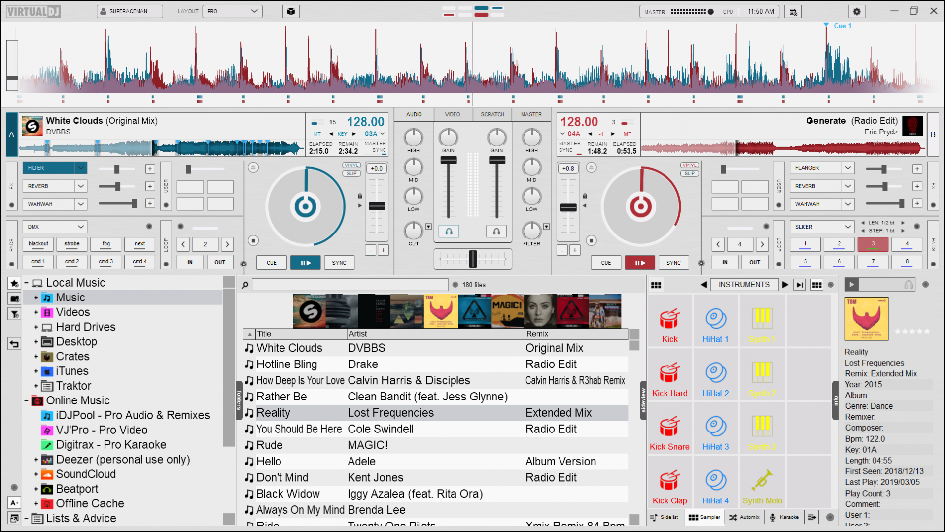 Once selected additional display options are available. The default display is 4-Deck with a 2+2 Channel Mixer but can be changed to a full 4-Channel Mixer.