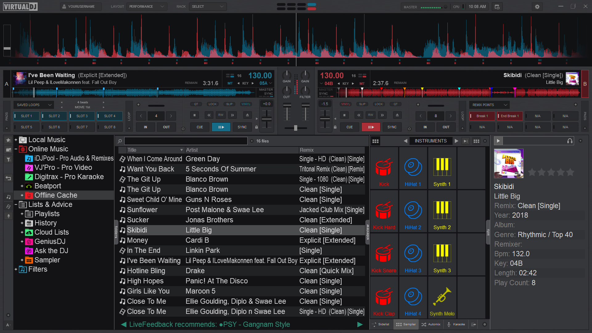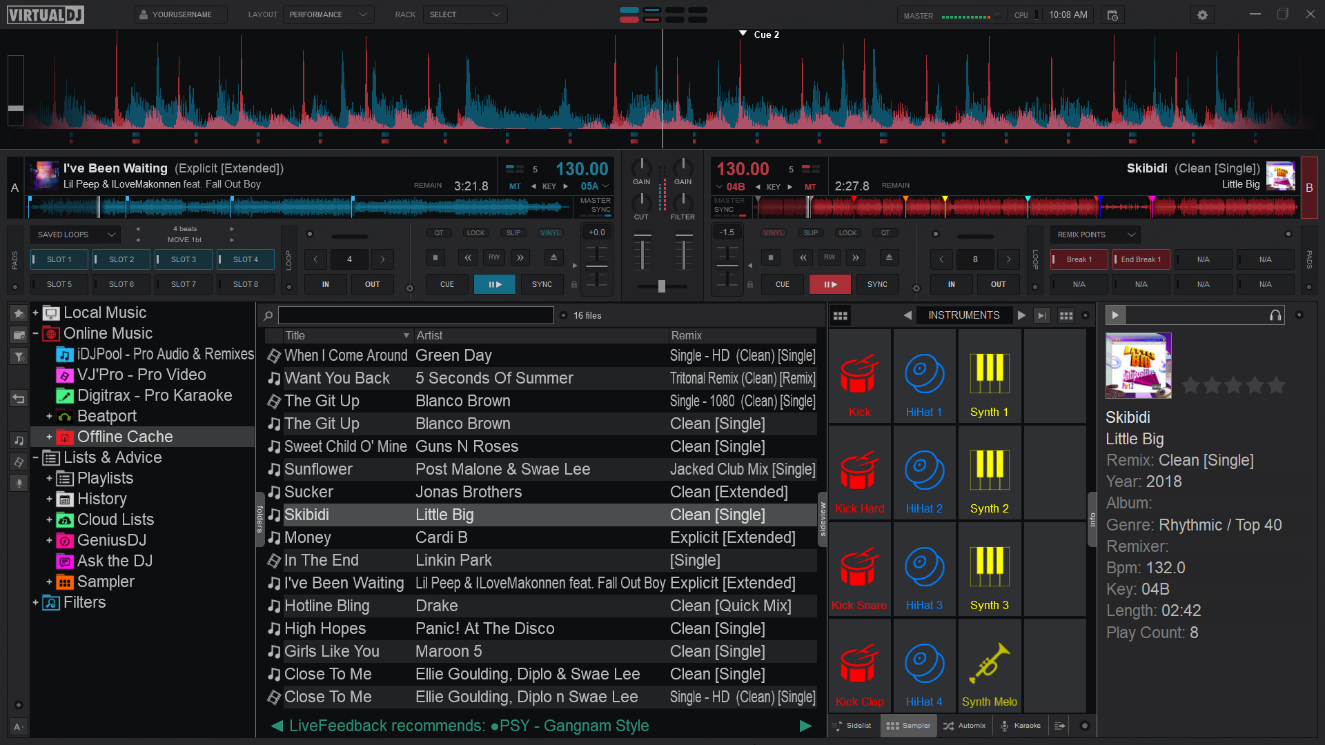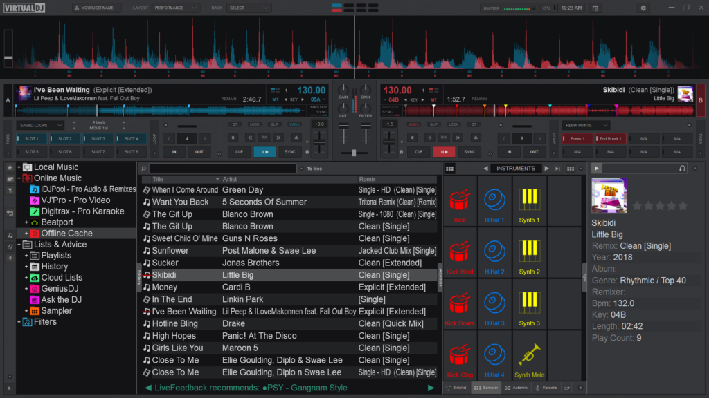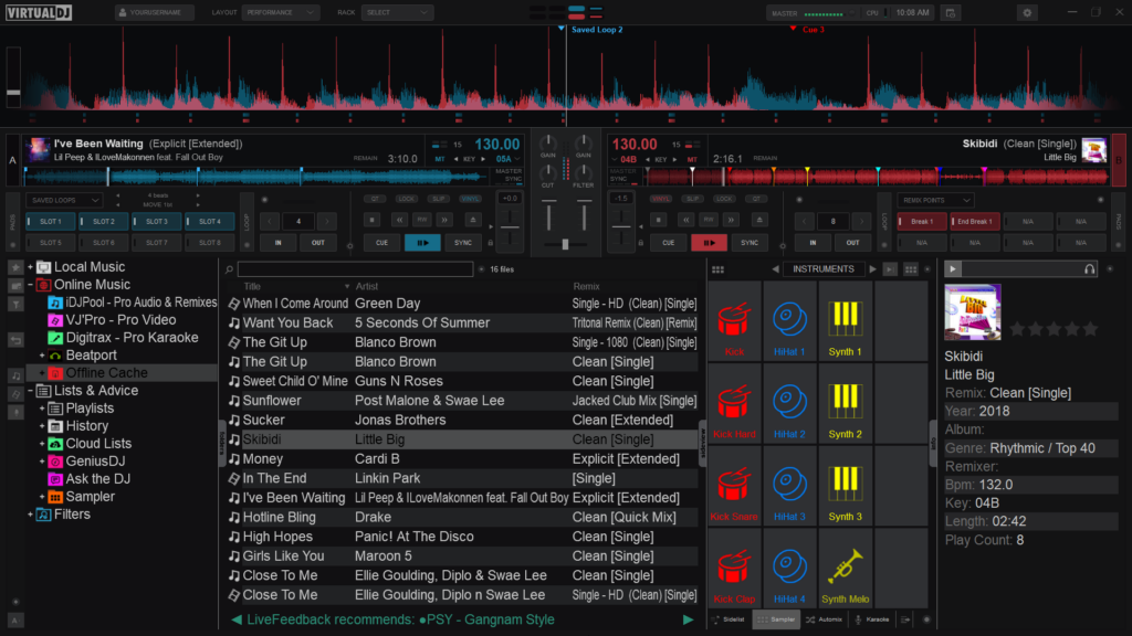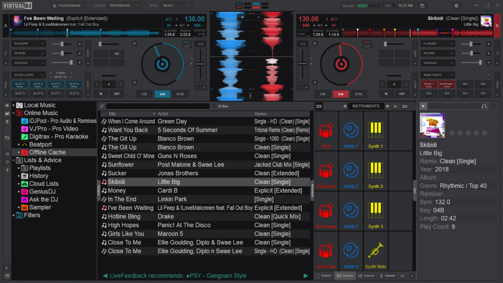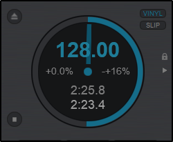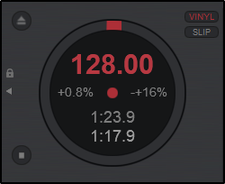 3 options are available; Needle, Text, or Needle + Text. The Needle look (default) displays just a spinner while the Text look will display deck information such as BPM, Pitch values as well as elapsed and remaining time. Choosing Needle + Text will combine the 2 looks together.