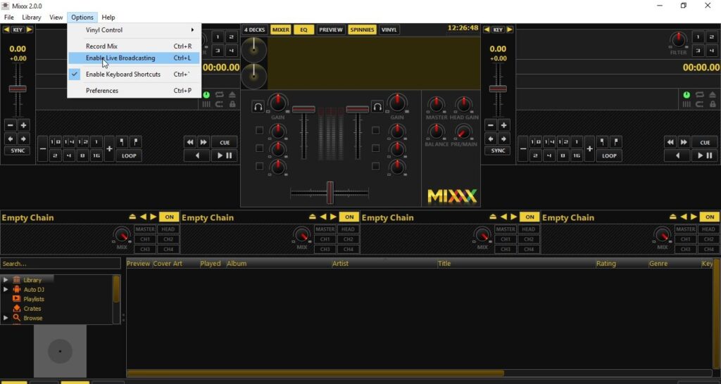 If you would like to start broadcasting live using Mixxx, make sure you have all the software required: