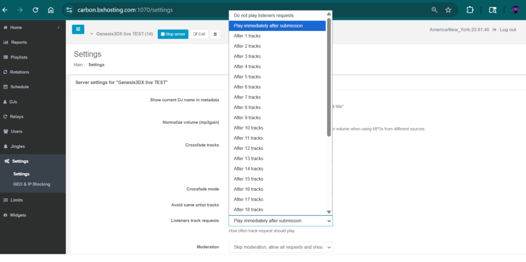 - Configure the interval between song requests (e.g., how many regular tracks play before a requested track is inserted).